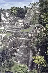 The North Acropolis of the ancient Maya city of Tikal in Guatemala is an architectural complex that served as a royal necropolis and was a centre for funerary activity for over 1300 years. The acropolis is located near the centre of the city and is one of the most studied of Maya architectural complexes. Excavations were carried out from 1957 to 1969 by the University of Pennsylvania, directed by Edwin M. Shook and William Coe.[1]