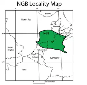 The North German Basin is a passive-active rift basin located in central and west Europe, lying within the southeasternmost portions of the North Sea and the southwestern Baltic Sea and across terrestrial portions of northern Germany, Netherlands, and Poland.[1] The North German Basin is a sub-basin of the Southern Permian Basin, that accounts for a composite of intra-continental basins composed of Permian to Cenozoic sediments, which have accumulated to thicknesses around 10–12 kilometres (6–7.5 mi).[2][3] The complex evolution of the basin takes place from the Permian to the Cenozoic, and is largely influenced by multiple stages of rifting, subsidence, and salt tectonic events. The North German Basin also accounts for a significant amount of Western Europe's natural gas resources, including one of the world's largest natural gas reservoir, the Groningen gas field.[4]