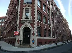 The journalism school is located near the center of Northeastern's Boston campus just off Huntington Avenue in Lake Hall, constructed around 1911. It includes an innovation lab, computer lab and podcast studio. The building once belonged to the United Drug Company. Originally, the drug company built six "turn-of-the-century industrial architecture" buildings as part of its corporate offices, and manufacturing and research facilities designed by the Boston firm of Gay and Proctor, and later modified by Wheelwright, Haven & Hoyt.[28] Northeastern purchased them in 1961 and eventually demolished three structures in preparation of a sports facility. However, that plan was soon scrapped as the rapidly growing university was in need of office and laboratory spaces. One of the surviving red brick buildings, featuring terracotta ornamentation, was divided into four sections now known as Lake Hall, Holmes Hall, Nightingale Hall and Meserve Hall.[29]