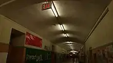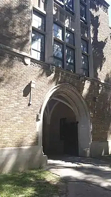 Further evidence of the Gothic Collegiate style can be found in the vaulted ceilings of the hallways, and the arched doorways and windows featured throughout the building. As stated on a plaque inside the main entrance, during the 60s a major addition was built which significantly altered the rear of the school. These renovations changed little about the original parts of the building. Although once grand, over the decades, the facility has fallen into considerable disrepair and is in need of extensive renovation.[10]
