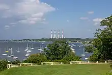 The four enormous smoke stacks are a defining landmark of Northport and can be seen from up to 36 miles away atop East Rock in New Haven, Connecticut, across the Long Island Sound.[2][8] At 620 ft (190 m), they are among the tallest structures on Long Island.[9][10][11]