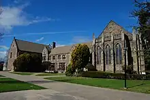 ![]() A view of the Euclid Avenue business district, through the university's North Gate | |