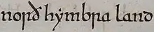 An early mention of Northumberland as norð hẏmbra land "north of Humber land" in the Anglo-Saxon Chronicle