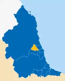 From the county council's formation in 1889 until 1981 Newcastle was the county town, being the temporary county town of two counties when the city became a part of the Tyne and Wear metropolitan county in 1974.[16] The county council has been governed from Morpeth since 1981. in 2009 the administration restructured into a unitary authority still called Northumberland County Council. Since 2019, North of Tyne Combined Authority and its elected mayor recreated Newcastle's overall governance of the historic county area; North Tyneside, Newcastle and the Northumberland district.