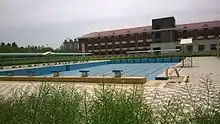 A&F provides convenient sports facilities to staff and students. Across the campuses, there are 12 tennis courts, 1 indoor stadium, 2 outdoor stadiums, 1 arena for volleyball and basketball, 2 outdoor swimming pools, 48 outdoor basketball courts, 28 outdoor volleyball courts, several badminton courts and 143 outdoor tables for Ping-Pong. Tennis is popular across the campus and tennis championships are held every year. A&F also supports College Students Basketball and Volleyball Team to gain reputation in CUBA (Chinese University Basketball Association) and CUVA (Chinese University Volleyball Association).