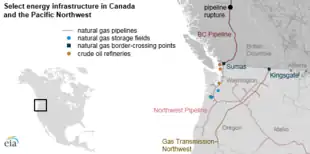 Selected energy infrastructure in the northwest. The Northwest Pipeline is shown in light red.