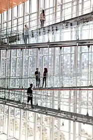 The NU-Q staff provide the range of support services expected in an American college or university, including professionally staffed offices for admissions, academic and personal counseling, student activities, student records, human resources, finance, and marketing/public relations.[53] The collections of the professionally staffed NU-Q library focus on media issues, and students and faculty also have access to all electronic resources available at the Northwestern University Evanston campus and to the services of inter-library loan.[54] A production facilities department provides support for the media-intensive work of students and faculty at NU-Q.[55]