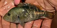 - ↑ De la Maza-Benignos M., Ornelas-García C.P., Lozano-Vilano , García-Ramírez M.E., Doadrio I. (2015). "Phylogeographic analysis of genus Herichthys (Perciformes: Cichlidae), with descriptions of Nosferatu new genus and H. tepehua n. sp". Hydrobiologia. 748 (1): 201–231. doi:10.1007/s10750-014-1891-8. hdl:10261/126238. S2CID 16769534.