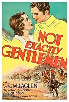 Not Exactly Gentlemen is a 1931 American pre-Code Western film directed by Benjamin Stoloff and written by Dudley Nichols and William Conselman. It is based on the 1917 novel Over the Border by Herman Whitaker. The film stars Victor McLaglen, Fay Wray, Lew Cody, Robert Warwick, Eddie Gribbon, and David Worth. The film was released on March 8, 1931, by Fox Film Corporation.[1][2][3]