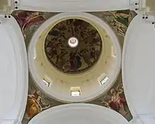 In the 19th century the dome had to be reconstructed twice, ending up as a Neo-Classical construction, after collapses caused by earthquakes. In the 1950s much refurbishment was carried out, not entirely successfully, for example the trompe-l'œil of the vertical elements and the tempera decoration of the vaults by the painters Arduino and Baldinelli, as well as major alterations to the high altar and the organ. Most serious however was the replacement of the original pitched roof of the nave by a heavy loft of Roman brick and concrete which was probably one of the causes of the collapse of 1996.