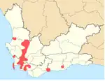 Distribution of Notobubon galbanum across the Western Cape, South Africa.