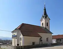 The local parish church is dedicated to Saint Martin and belongs to the Roman Catholic Archdiocese of Ljubljana. It was first mentioned in 1453, but the current building was extensively rebuilt in 1861.[4][6] The main altar was created by Celestin Mis using Baroque statuary. The church's statues of Saint Martin and the Virgin Mary date from the late 15th century.[4]