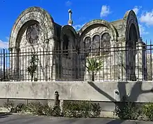Notre-Dame-de-la-Compassion is a Roman Catholic Church located on Place du Général Koenig in the 17th arrondissement in Paris. It was originally built in 1842–43 as a memorial chapel to Ferdinand Philippe, Duke of Orléans, the heir to King Louis-Philippe of France, who was killed in a road accident in 1842. It was built in the Neo-Byzantine style, with elements of Gothic, Baroque and other styles, and was originally called the Chapelle Royale Saint-Ferdinand. In 1970 it was moved stone by stone from its original location a short distance away to make space for the new Palais des Congrès. It became a parish church in 1993. Its notable decoration includes stained glass windows designed by Jean-Auguste-Dominique Ingres, and sculpture by Henri de Triqueti.[1] It was designated a French historic monument in 1929.[2]
