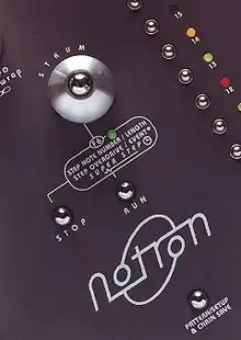 The Notron is a British-designed MIDI step sequencer used by Björk, Peter Gabriel, Howie B[1] and others.[2] Produced in two models, the Mark 1 was available between 1996 and 1998. The Mark 2 was a slim blue box produced until about 2001. About 100 Mark 1 units were sold and a similar amount of Mark 2s.The Notron was a step-time MIDI sequencer having four rows and up to 16 steps.[2] It was made to be used as a lap-top device for ease in live performances.[3] In 2006 the company released a software version of the Latronic Notron.[4]
