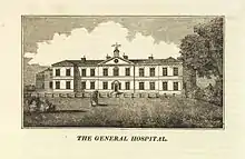 The foundation stone for the first building, which had been designed by John Simpson, was laid on 12 February 1781 and the hospital opened with 44 beds in September 1782.[2][3] John Wesley, the theologian, was an early visitor to the hospital.[4]