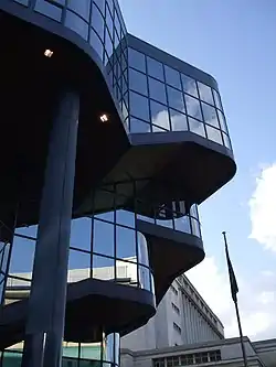 Nottingham Royal Concert Hall is a concert hall in the English city of Nottingham. It is owned by Nottingham City Council and is part of a complex that also includes the city's Theatre Royal.[1] The Royal Concert Hall's striking modern architecture has proved to be a city landmark at the heart of Nottingham City Centre, opposite the more recently built The Cornerhouse complex.