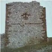 - A three-sided rectangular tower at the western vertex of the Upper Town decorated with a cross made of dark red stone with an inscription – I-H К (А) – made of brick;