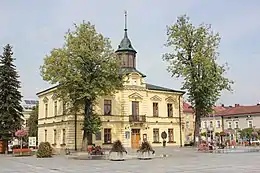 The town's full official name is Królewskie Wolne Miasto Nowy Targ, which can be translated as 'Royal Free Town Nowy Targ'. Nowy Targ was a royal town of the Crown of the Kingdom of Poland and was granted staple right in 1638.[3] In nearby Slovakia, the town is known as Nový Trh.