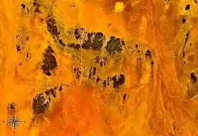 The Nubian Desert (Arabic: صحراء النوبة Şaḩrā’ an Nūbah) is in the eastern region of the Sahara Desert, spanning approximately 400,000 km2 of northeastern Sudan and northern Eritrea, between the Nile and the Red Sea. The arid region is rugged and rocky and contains some dunes, it also contains many wadis that die out before reaching the Nile. The average annual rainfall in the Nubian Desert is less than 5 inches (130 mm).[1]