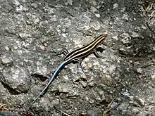 Nucras caesicaudata, the bluetailed sandveld lizard or bluetail scrub lizard, is a wall lizard in the family of true lizards (Lacertidae). It is found in southern Mozambique, southwestern Zimbabwe and the extreme northeast of South Africa.[1] The lizard can clearly be distinguished because of its distinctive blue tail. Little has been discovered about its anatomy and way of life as it is rarely encountered, but it lives in the sandveld, a dry, sandy, savanna ecoregion.[2]