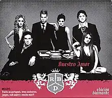 Nuestro Amor (English: Our Love) is the second studio album by Mexican Latin pop group RBD. The album was released on September 22, 2005, in Mexico, selling over 127,000 units in its first seven hours of release in the country, and 160,000 in the first week, enough for it to be certified Platinum almost instantly.[1] It was eventually certified 3× Platinum and Gold in Mexico. In the United States, the album was released on October 4, 2005, and peaked at number 88 on the Billboard 200 chart. It also spent three weeks in a row at number one on the Top Latin Albums chart, selling over 100,000 units just in its first week of release.[2] The album was released in Spain on October 30, 2006, and has been certified 2× Platinum. The album was nominated for a Latin Grammy in the "Best Pop Album by a Duo/Group with Vocals" category at the 2006 Latin Grammy Awards.
