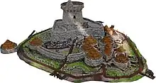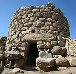 The Nuraghe La Prisgiona[1] is a nuragic archaeological site (occupied from the 14th until the 9th century BC), located in the Capichera valley in the municipality of Arzachena Costa Smeralda in the north of Sardinia. It consists of a nuraghe and a village comprising around 90–100 buildings, spread across 5 hectares. Findings from this site are in many cases unique in Sardinia, particularly with regard to decoration and use. Due to the large extent and number of buildings the site is considered unique in North-East Sardinia. There is also some evidence for occupation during Roman and medieval times. The Giants' grave Coddu Vecchiu is located nearby.[2]