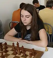 Salimova won the Bulgarian Women's Chess Championship in 2017, after which she was invited to play in the C group of the Tata Steel Chess Tournament. In April 2018, Salimova became the Bulgarian champion in section G16 and 2 days later, Bulgarian blitz champion in the boys' section under 16. In May 2018, she won the Open International d'Échecs de la Côte Basque in Bayonne, France, with a performance of 2600+, enough for a GM norm. In July 2018, Salimova scored her last WIM, first IM and first WGM norm in Pardubice, Czech Republic, with a performance of 2478. Her rating subsequently rose to 2352, she became number two among Bulgarian women and number two in the under-16 girls world ranking, as well as number eleven in the world list for girls under 20.[1] In September 2018, she took part in the Serbian Women's League with the team of Banovci Dunav. Salimova played at the second board and scored 8/10 (without losses) with a performance of 2400+. This gave her a second WGM norm, but the team did poorly and finished in last place.