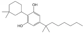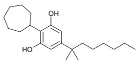 O-1871 is a potent cannabinoid agonist which was invented by Billy R Martin and Raj K Razdan at Organix Inc in 2002. It has a CB1 receptor affinity of 2.0 nM and a CB2 receptor affinity of 0.3 nM.[1] Structurally, O-1871 is a cyclohexylphenol derivative related to CP 47,497,[2] and so is illegal in some jurisdictions where CP 47,497 and its derivatives are banned. However the 3,3-dimethylcyclohexyl substituent of O-1871 can be replaced by various other groups, producing other potent compounds such as the cycloheptyl derivative O-1656 and the 2-adamantyl derivative O-1660, as well as the corresponding 3,5-dichlorophenyl derivative,[3] which are not cyclohexylphenol derivatives.