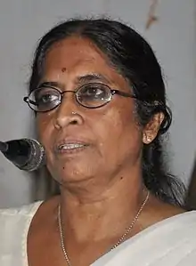 O. V. Usha (born 4 November 1948)[1] is a Malayalam poet and novelist. Described by K. M. George as a poet with "deep moral concern and technical dexterity",[2] she has written four volumes of poems and a few short stories while also authoring a novel. She has also written articles in various journals. Usha served the Mahatma Gandhi University Kottayam as its director of publications. She won the Kerala State Film Award for Best Lyrics for Mazha, a Malayalam film released in 2000.[3]