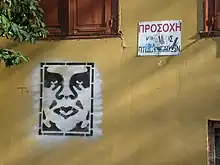OBEY Giant image stenciled on a building wall in Athens, Greece