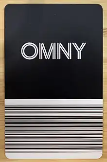 A physical card is offered for people without access to mobile devices or contactless bank cards to load value onto and access the system. The card is thicker than the MetroCard it replaced, and is valid for seven years from purchase.[36] It can be purchased or reloaded from retailers such as CVS, 7/11 and Duane Reade drugstores, as well as bodegas, CFSC Check Cashing, and dollar stores that previously sold MetroCards. OMNY can also be purchased directly from subway station ticket vending machines in the future.[92] It contains two barcodes on the front and back; one barcode is used to record the card being purchased, and the other is used to encode fare information. On the standard card, half of the front side contains a barcode, which is oriented to resemble railroad tracks, while the other half of the front side contains a white-on-black OMNY logo. The back of the card contains the card number, card security code, expiration date, and the other barcode. Variants of the card are also planned for student, senior, and MTA employee fares as well as limited edition versions.[34]
