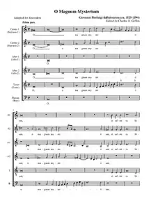 - O magnum mysterium (Palestrina): Free scores at the Choral Public Domain Library (ChoralWiki)