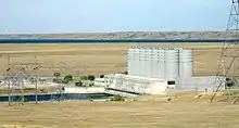 ![]() Oahe powerhouse showing surge tanks and powerhouse, looking to north-west. | |