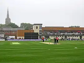 Oakham School is a cricket ground in Oakham, Rutland. Forming part of sports facilities of Oakham School, the ground dates from around 1821.[1] First-class cricket was first played at Oakham School in the 1935 County Championship, with Leicestershire playing against Kent. Leicestershire used the ground as an outground on three more occasions prior to the Second World War.[2] Following a gap of 62 years, first-class cricket returned to Oakham School in 2000, when Leicestershire played the 1999 County Champions Surrey. The ground has since been used intermittently as an outground for first-class matches by Leicestershire, with five matches played there since 2000.[2] During the first decade of the 2000s, Leicestershire played nine List A one-day matches at the ground between 2001–08, before returning after a ten year gap when they played Lancashire in the 2018 Royal London One-Day Cup.[3] In 2020, Leicestershire announced plans to revive the Oakham Cricket Festival and make it a permanent part of Leicestershire's county schedule.[4]