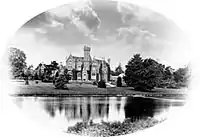 Richard Hall-Say built Oakley Court in 1859 two years after his marriage. He was born as Richard Hall in 1827.[4] His father was Richard Hall, a merchant, but it was his mother Harriet Say that brought to him his great wealth. She was the daughter and co-heir of Robert Say who owned Pennington Hall near Manchester. When her uncle, the Rev. Henry Say who had no direct heirs, died in 1855, Richard inherited and took the additional name of Say to become Richard Hall-Say.[5] In 1857, he married Ellen Evans, who was the only child of Edward Evans of Boveney Court in Windsor. The couple had six children, two boys and four girls. Their eldest daughter Mary Violet Hall-Say married the Rev Arthur Henry Austen Leigh[6] who was the great nephew of Jane Austen. In about 1874, the Hall-Say family sold Oakley Court to Lord Otho Fitzgerald.