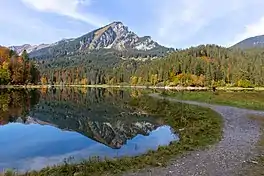 Obersee is a lake on Oberseealp in the Canton of Glarus, Switzerland. Its surface area is 24 ha (59 acres). There is a hotel on the lakeside which overlooks the lake and the Brünnelistock. During a cold and dry winter, there is a chance of black ice developing.