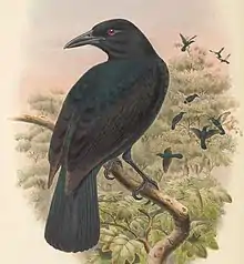 The Obi paradise-crow (Lycocorax obiensis) is a species of paradise-crow in the family Paradiseaidae along with the birds-of-paradise. This bird was split from its congener, the Halmahera paradise-crow (L. pyrrhopterus) in 2016.[1] The species was first described and named by Heinrich Agathon Bernstein in 1865.