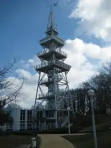 The Observation Tower Ahlbeck is a 50 metres tall observation tower with tree observation decks at Ahlbeck on the island Usedom in Germany. The Observation Tower Ahlbeck is a steel framework tower and carries on a fourth platform over the observation platforms and the top some aerials for mobile phone services.