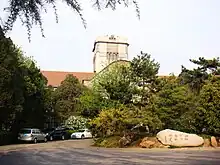 The first campus of Haida is the site of former German Bismarck Barracks which is known as Yushan Campus (鱼山校区). It is situated on a hill with a view of the sea in the previous German Concession part of Shinan District. Featuring German-style architecture built in the early 1920s, it is especially renowned for its beauty. The surrounding area is a popular tourist destination that includes several churches and Zhan Qiao pier.
