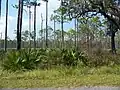 Ochlockonee River State Park's primary ecologic biome is East Gulf coastal plain near-coast pine flatwoods, with some live oak thickets also present within the park boundaries;[4][2] several species of golden wiregrass can be found in abundance within the park.[6] The park is considered to be one of the best remaining examples of a natural flatwoods environment in the state,[7] and it contains a significant habitat for the endangered red-cockaded woodpecker, which nests in longleaf pines. In addition to a large number of other birds,[5] bobcat, American black bear, white-tailed deer, gopher tortoise and fox squirrel are also resident;[6] a population of white-colored squirrels, a genetic mutation of the eastern gray squirrel,[7] are often found at the park as well.[8]