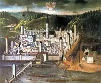 A monastery, Tückelhausen Charterhouse, dedicated to Saints Lambert, John the Baptist, and George, was founded in 1138 by Otto I, Bishop of Bamberg, as a double canonry of the Premonstratensians. From 1351 it belonged to the Carthusians and was secularised in 1803.[5]