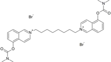 5-Hydroxyisoquinoline and dimethylcarbamoyl chloride is heated on a steam bath for 2 hours. The mixture is then cooled and treated with benzene. The resulting solid is then dissolved in water. Sodium hydroxide is added to make the solution basic. The solution is extracted with chloroform and then dried with magnesium sulfate. The solvent is evaporated and the solid residue is then recrystallized from petroleum ether. The resulting product, 5-dimethylcarbamoxyisoquinoline, is then mixed with 1,8-dibromooctane in acetonitrile and refluxed for 8 hours. After cooling, the precipitate is filtered and recrystallized from acetonitrile. The product is then dried in vacuo for 14 hours at room temperature, resulting in the final product.[3]