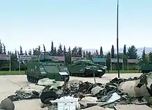The museum displays the tanks, jets and weaponry used by Syria during the war, most of them Soviet-made, captured Israeli weaponry, such as Israeli tanks,[2] most of them captured during the 1973 war, with an exception of a tank captured from Israel in the Battle of Sultan Yacoub which occurred during the 1982 Lebanon War,[3] as well as the wreckage and remains of Israeli jets downed by the Syrian Air Defense Force.