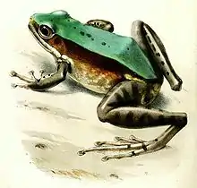 Odorrana chloronota , commonly known as the chloronate huia frog or copper-cheeked frog, is a species of frog in the family Ranidae that is found in Cambodia, China, India, Laos, Myanmar, Thailand, Vietnam, and possibly Bangladesh and Nepal.