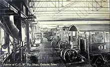 By January 1892, Oelwein was chosen to become the center of the Chicago Great Western Railway; the CGW made the town the site of their locomotive and car repair shop, where four lines converge.[4] Clearing the land for the shops began in June 1894. The shops were completed and put into operation in May 1899. Thus, Oelwein became known as the "Shop City" and later the "Hub City" because of the rail lines coming into town and the repair shops located here.
