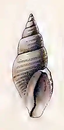 It is extremely difficult to characterise this species, because both its form and sculpture are more variable than in any other of the whole genus. Sometimes the form is oval, with the spire about the same length as the aperture, and sometimes it is fusiform, witli a long, strongly acuminate spire. The whorls are sometimes angulated and sometimes cylindrically rounded. The sculpture is, often, by far the most prominent in the axial direction, and often, it is so transversally. The typical shell has, thus, very prominent spiral ribs devoid of other sculpture than lines of growth, whilst the varieties violacea and cylindracea, frequently, have quite prominent axial ribs, and these are invariably – even if they only occur as lines of growth – curved. The most characteristic feature is the, not very long, cauda, and the deep wide siphonal canal. The apex gives no assistance as a specific feature, because it varies according to the sculptural character of the shell.