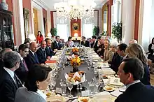 ![]() Secretary Clinton hosts a working lunch for French President Hollande in the Treaty Room at Blair House. | |