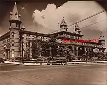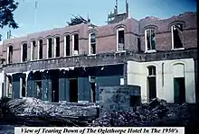 The Oglethorpe Hotel, located in downtown Brunswick, Georgia, was designed in 1888 by architect J. A. Wood and named after James Oglethorpe.[1] It was built on top of the previous Oglethorpe House, which was burned during the Civil War.[2] It was constructed of brick and had three main levels. The building was capped by conical towers at the corners and in the center.[3]