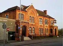 The South Staffordshire Railway reached Brownhills in 1850 and led to a huge expansion of the local mining operation and with it a population explosion in the area,[11] with the population increasing from 305 in 1801 to over 13,000 in 1891.[2] In 1858 a branch line was constructed through the heart of what was then the hamlet of Brownhills, which led to a migration of the population eastwards, leading to the formation of mining slums in the Ogley Hay area. Eventually, a new town centre developed, complete with library and theatre.[3] This led to the gradual amalgamation of Brownhills, Ogley Hay, and Catshill into one town.[12]