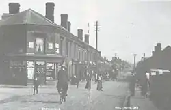 Mining was to remain the principal industry of Brownhills until the last pit closed in the 1950s.[13] During the 18th and 19th centuries the area known as Coppice Side was the hub of the mining industry, and the census of 1841 showed that over 80% of the population of the area which makes up modern Brownhills lived and worked there,[12] with up to ten pits active in the area at any one time.[14] As in other mining areas, several men lost their lives in the Brownhills pits. Seven miners, including a boy aged 11, died in an accident in 1861, and in October 1930 an explosion at the Grove Colliery killed fourteen miners, ten of them from Brownhills.[15][16]